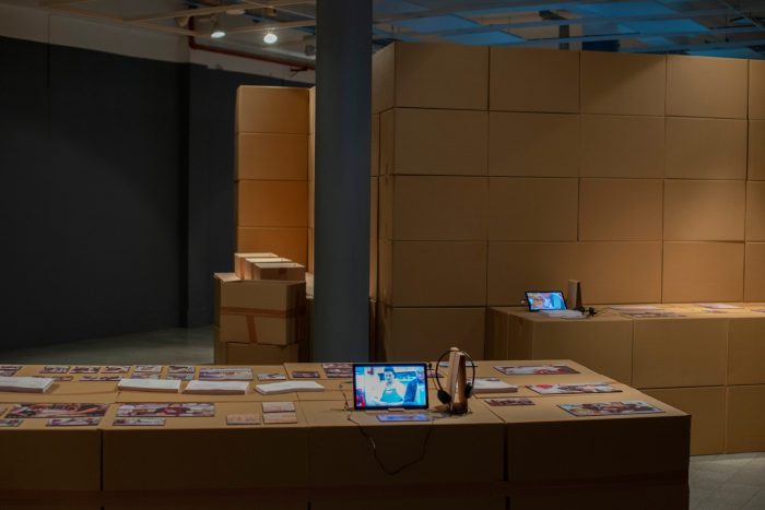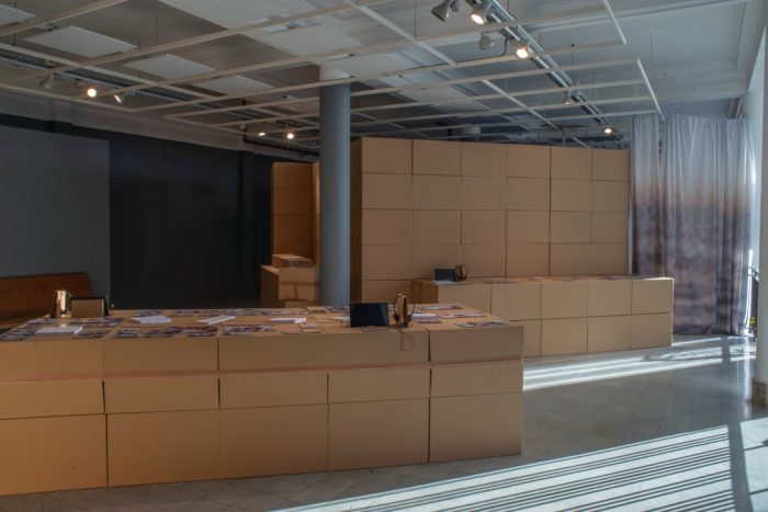 The brilliant idea of the curators was to use cardboard boxes as the base for all the setups.